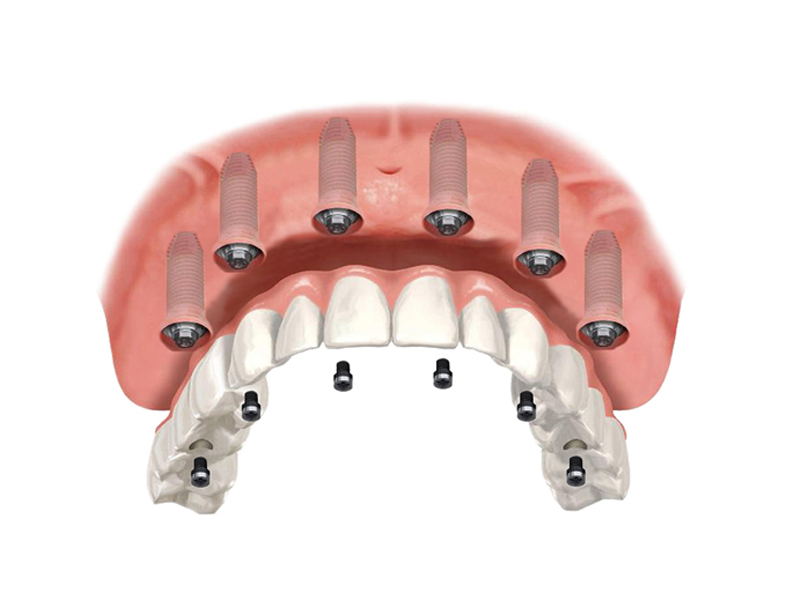Implant treatment is recommended for patients with a full arch of missing teeth or who are planning to remove and replace the remaining teeth. Offers a stable long-term alternative. If you are diabetic or use tobacco, you may not be the ideal candidate for this procedure.
